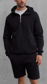 Cotton Blend Premium Ribbed Short-Set in Black