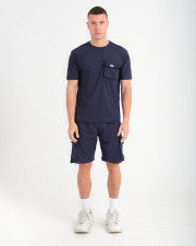 Cotton Blend Premium Ribbed Short-Set in Navy