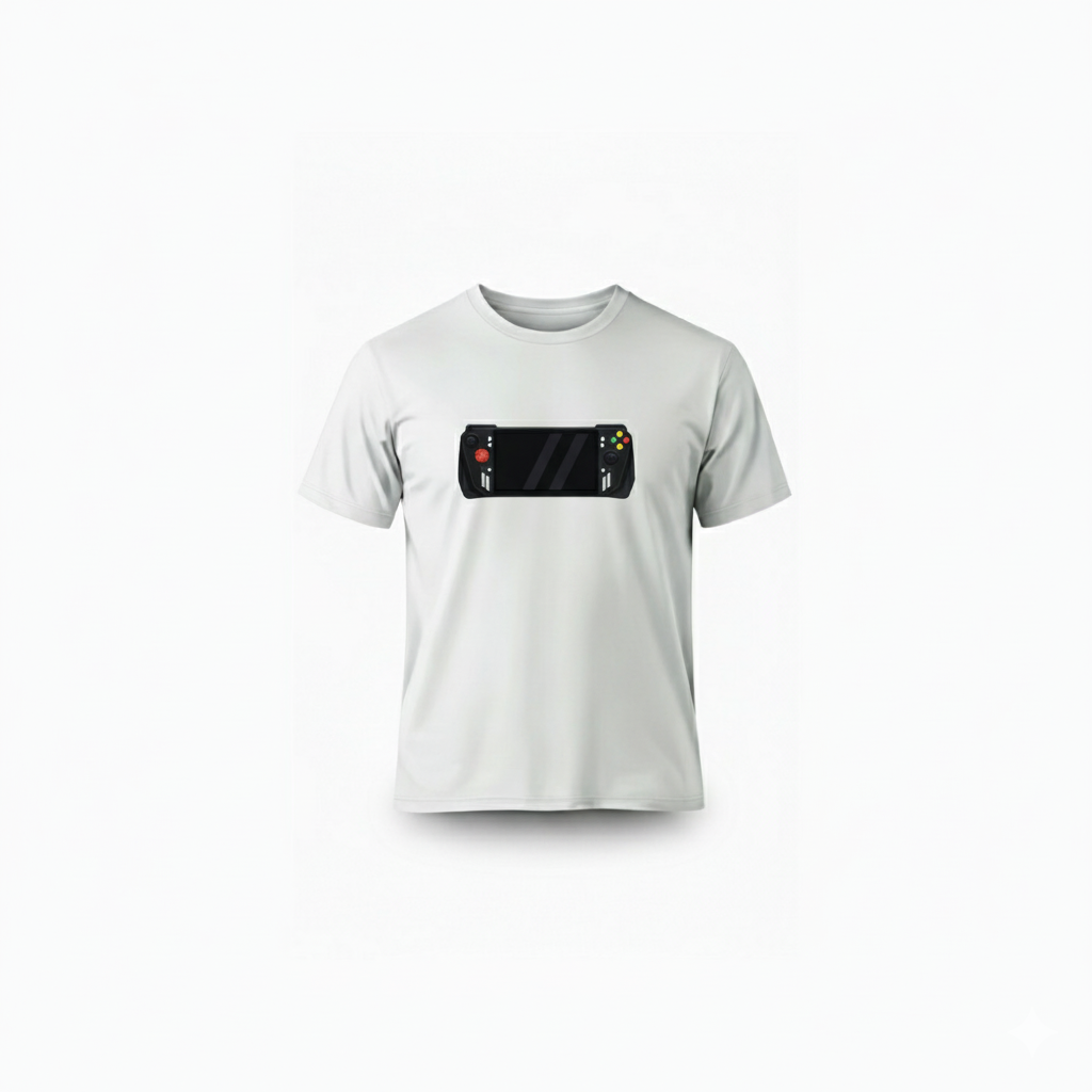 The highlight of this T-shirt is its bold Handheld Game Stick emblem, printed in a modern vector style with crisp edges and balanced colors. Produced with advanced printing technology, the design stays sharp and vibrant, resisting fading even after many washes.